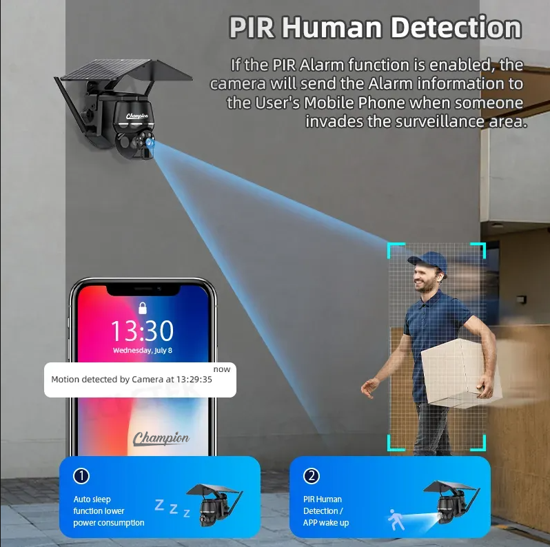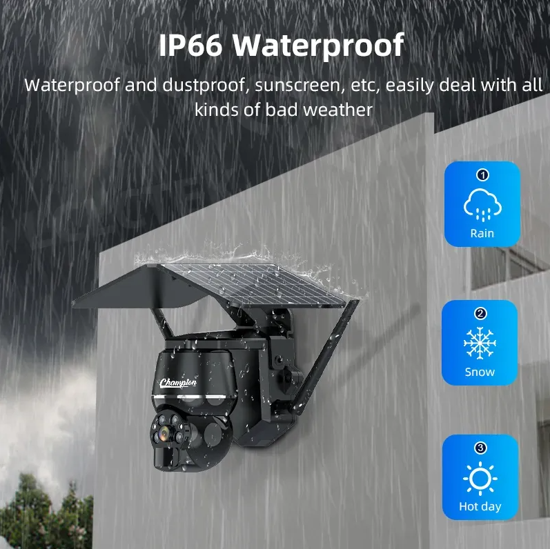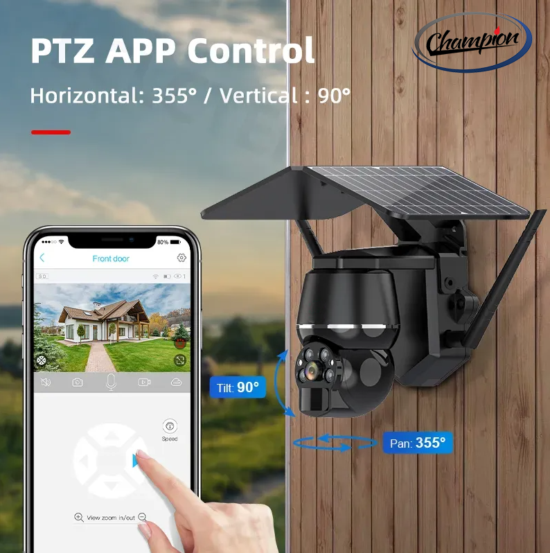 Champion 4G SIM Card Support 5MP Mini Solar Panel PTZ Camera Outdoor Waterproof PIR Motion Detection CCTV Security Wireless Camera